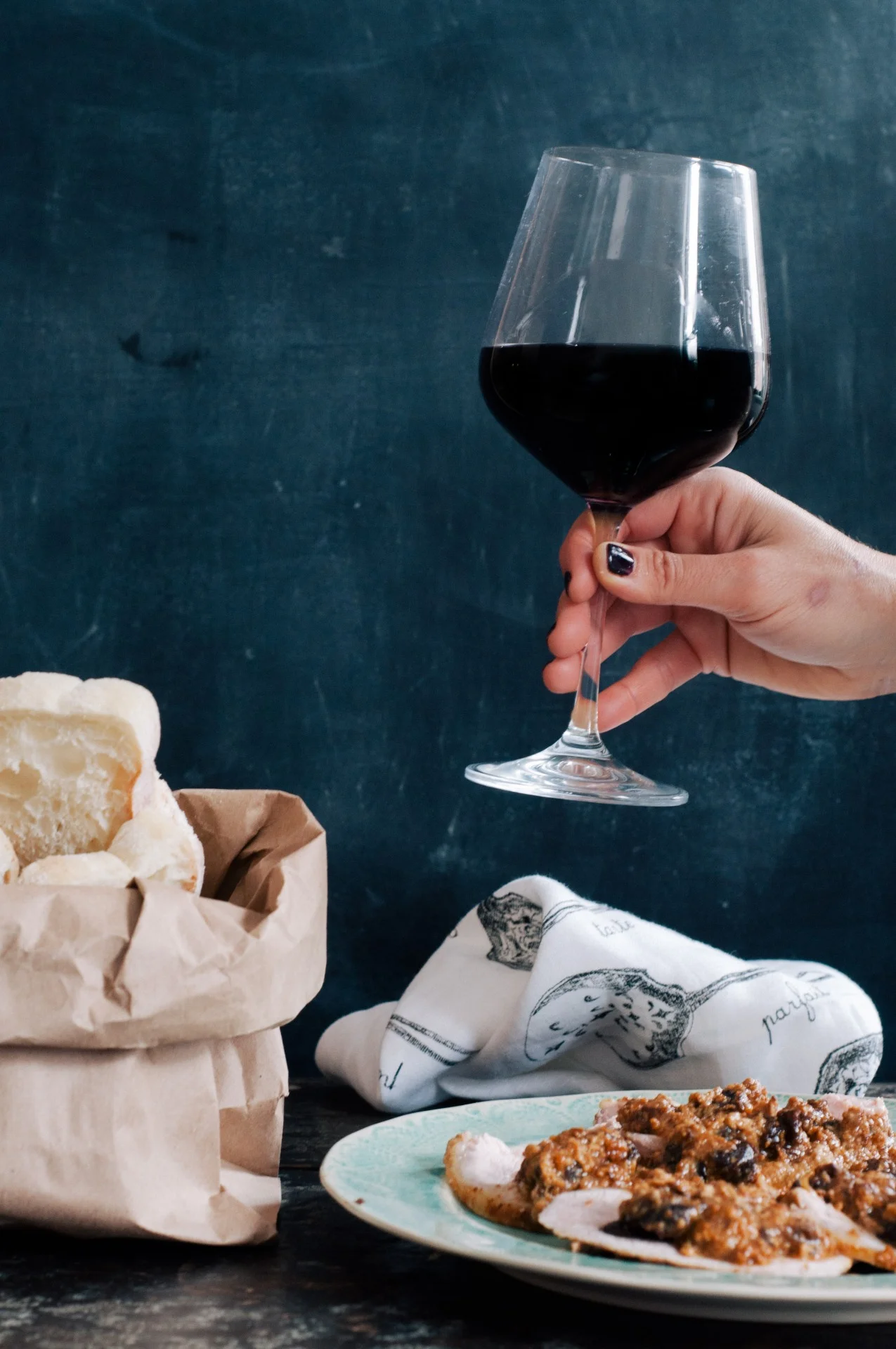 Roasted pork, stuffed with plum, marinated in white wine and onions